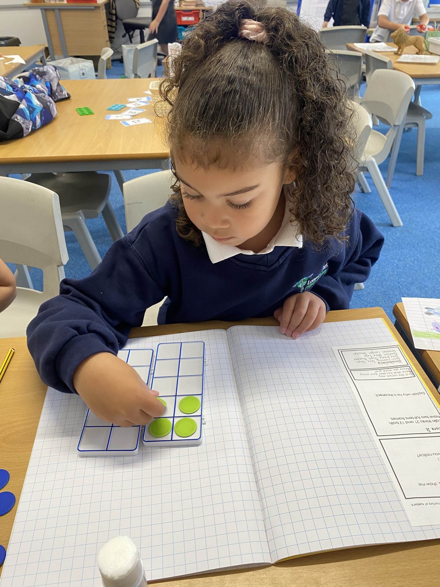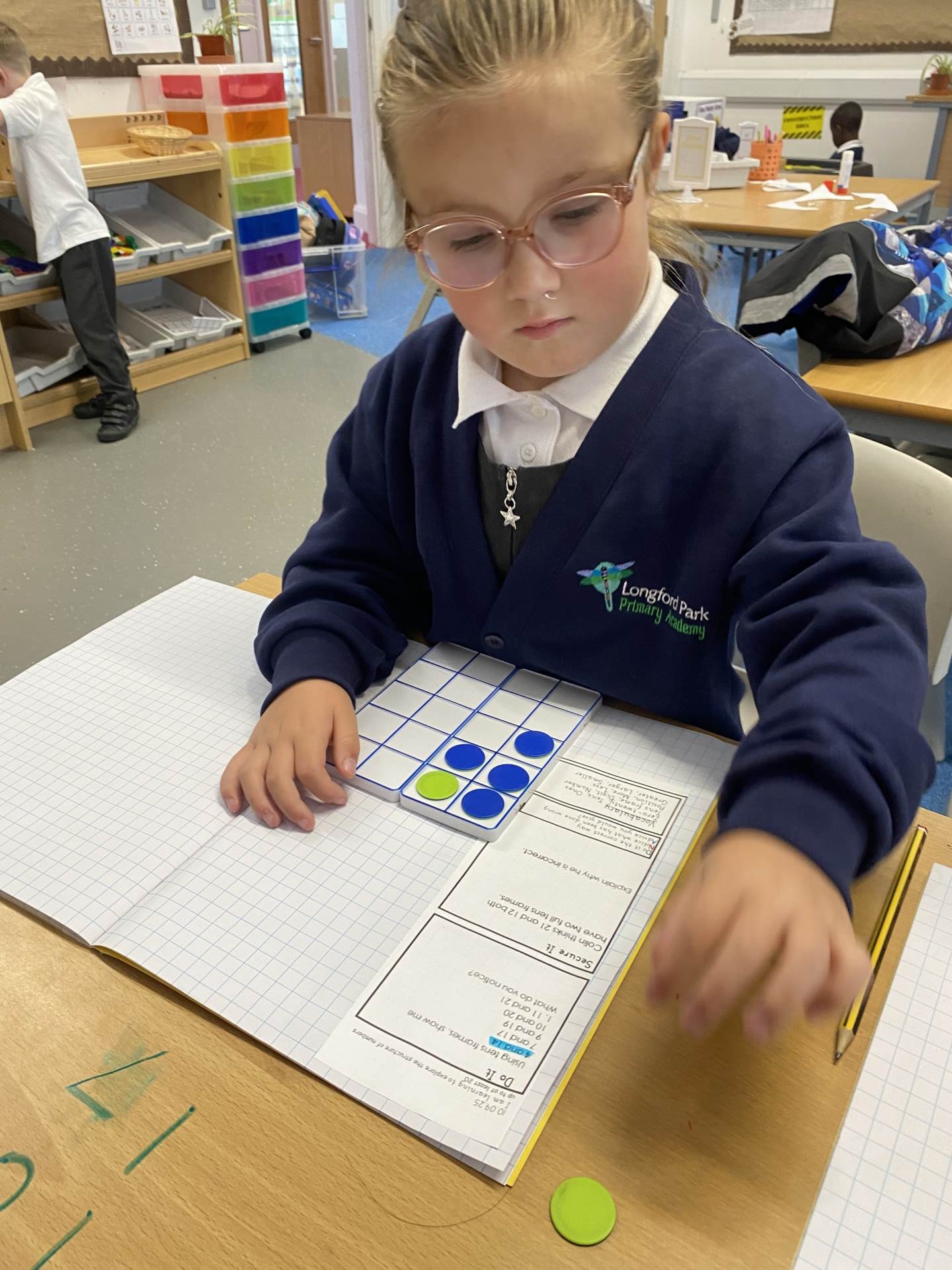 Manipulatives are used to model new concepts and are available to children in every lesson. These are carefully chosen to make sure the most appropriate ones are used for each concept. At Longford Park, we have focused heavily on the use of tens frames, double sided counters, place value counters, base 10 and numicon from EYFS. This enables children to develop their number sense, an understanding of the composition of number and to build upon these powerful concept images as they progress through the school.