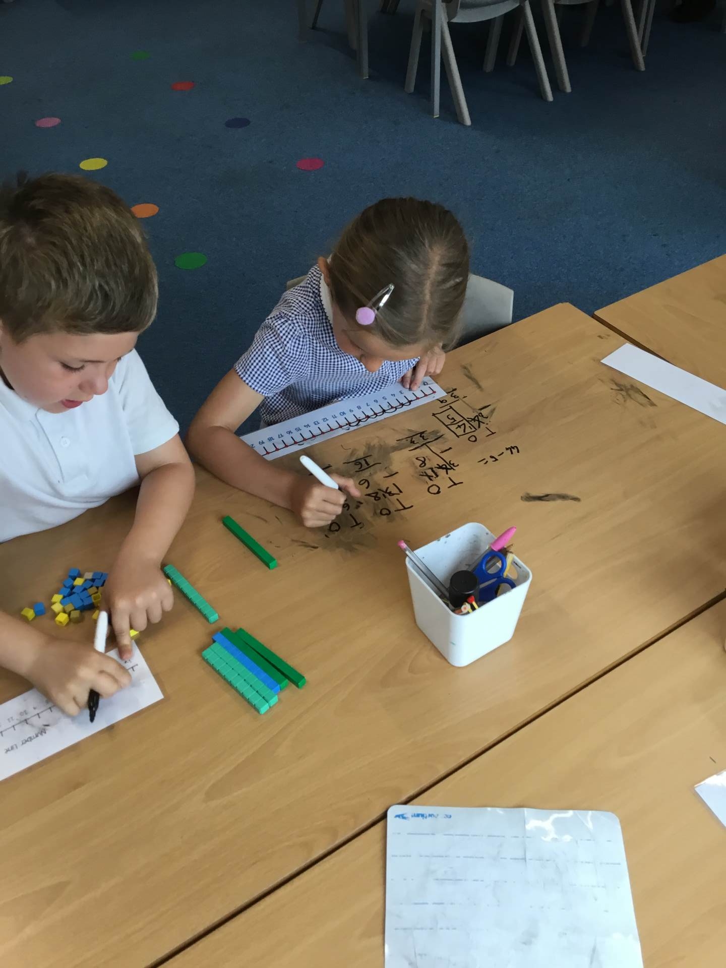 In addition to daily mathematics lessons, children also receive daily “maths meetings”. These sessions provide an opportunity for practising key number and arithmetic skills, revisiting prior learning or “pre-teaching” a new concept. Children are encouraged to make connections, see patterns, build their arithmetical fluency and work together to explore mathematical ideas. We regularly use ‘live’ assessment to monitor children’s learning and achievements which enable staff to ‘mop up’ misconceptions quickly.