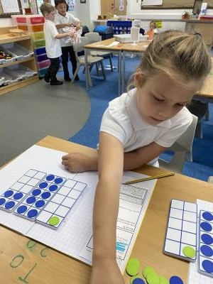 The EYFS curriculum focuses on teaching for a deep and secure understanding of numbers to 10 and learning in mathematics takes place on a daily basis in our Reception class. Children always have access to a mathematics area where they can explore and consolidate learning, as well as maths opportunities in the outdoor area. Alongside these enabling environments, high-quality interactions between adults and children allow the learning of pupils to be scaffolded and all pupils to be challenged or supported to make progress depending on their individual needs. As well as opportunities for child-initiated learning, children also take part in teacher-led focused groups. Children’s mathematical learning is recorded by collecting photos, videos and observations on “Evidence Me”, which is used for assessment and to inform next steps. In Pre-school, children sing number songs, practise counting and subitising, as well as exploring shape, space, measure and patterns through continuous provision and adult-initiated activities. As in Reception, high-quality interactions between adults and children underpin all learning and these enable all learners to develop a deep and secure understanding of mathematical concepts.